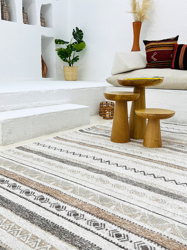 Moretti Nordi Koleksiyonu halılar %60 pamuk %40 polyester iplikten dokunmaktadır. Salon, oturma odası, yatak odası, çocuk odası, mutfak, banyo, yolluk, antre gibi evinizin bir çok farklı alanında kullanabilirsiniz. Yazlık veya kış bahçesi gibi  mekanlarınızda kullanım için de gayet uygun bir seçenektir. Dış mekan kullanımına uygun değildir.
